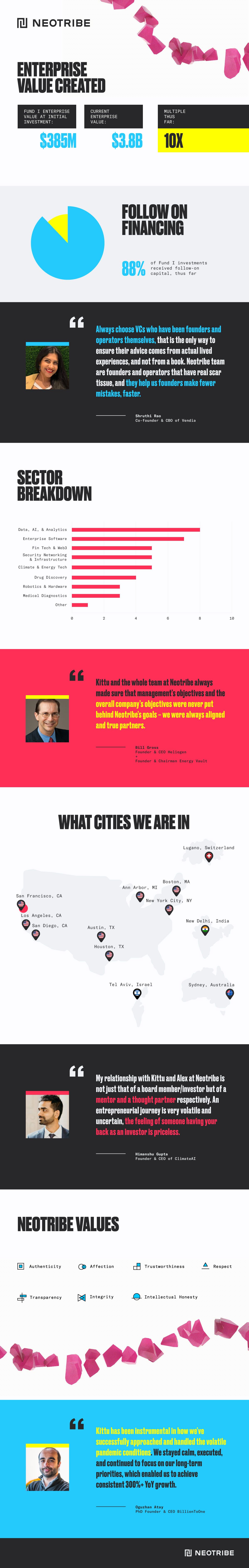 With a keen desire to focus on investing in the early stages of companies developing breakthrough technologies that stretch the imagination, I left NEA to launch Neotribe Ventures in early 2017.